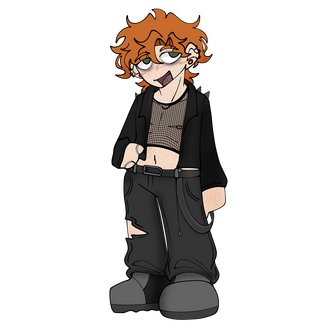 Flirty and funny n his style constantly changes between punk, emo, goth, and Adam Sandler